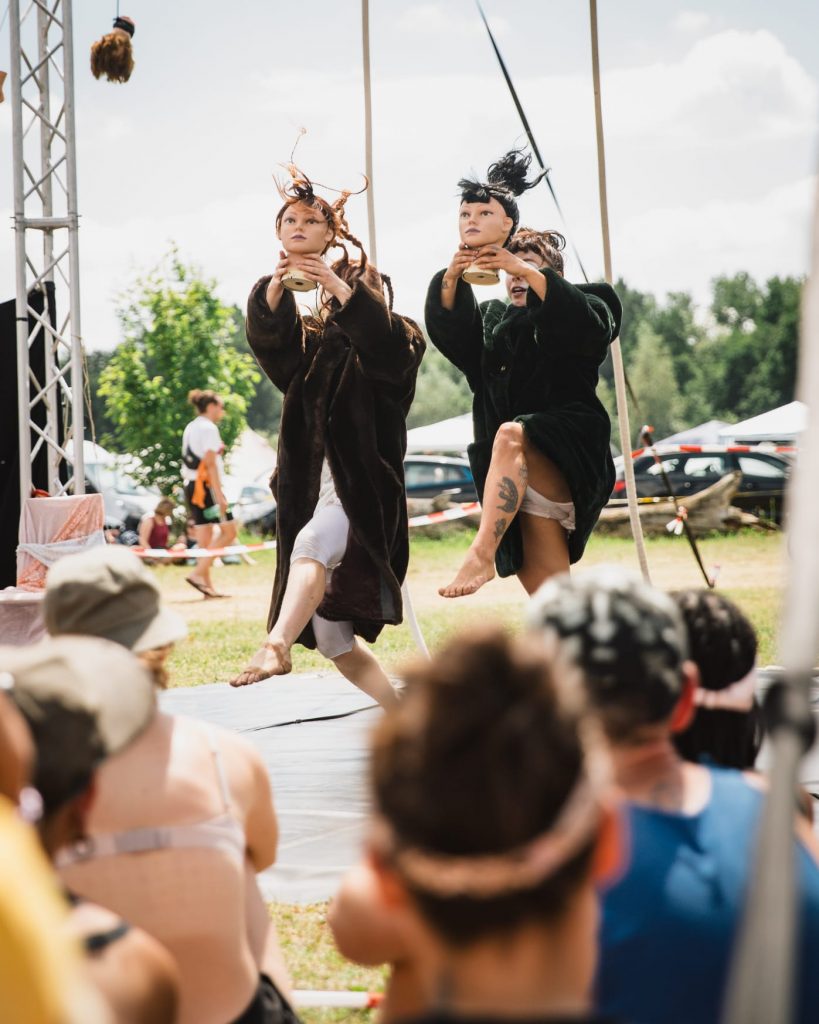 l’acro-danseuse Martina Calvo se sont rencontrées à l’ESAC (Bruxelles). Unies par leur vision artistique et leur amitié, elles ont commencé à créer des performances captivantes, à produire des événements tels que des cabarets de cirque, des soirées à thème et une rencontre de cirque