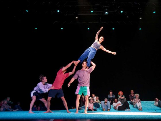 Corps tendres est une exploration sensible et acrobatique autour du sens du toucher. Dans cette création immersive acrobates et un musicien nous invitent à plonger dans l’intimité de nos interdépendances heureuses ou contraintes