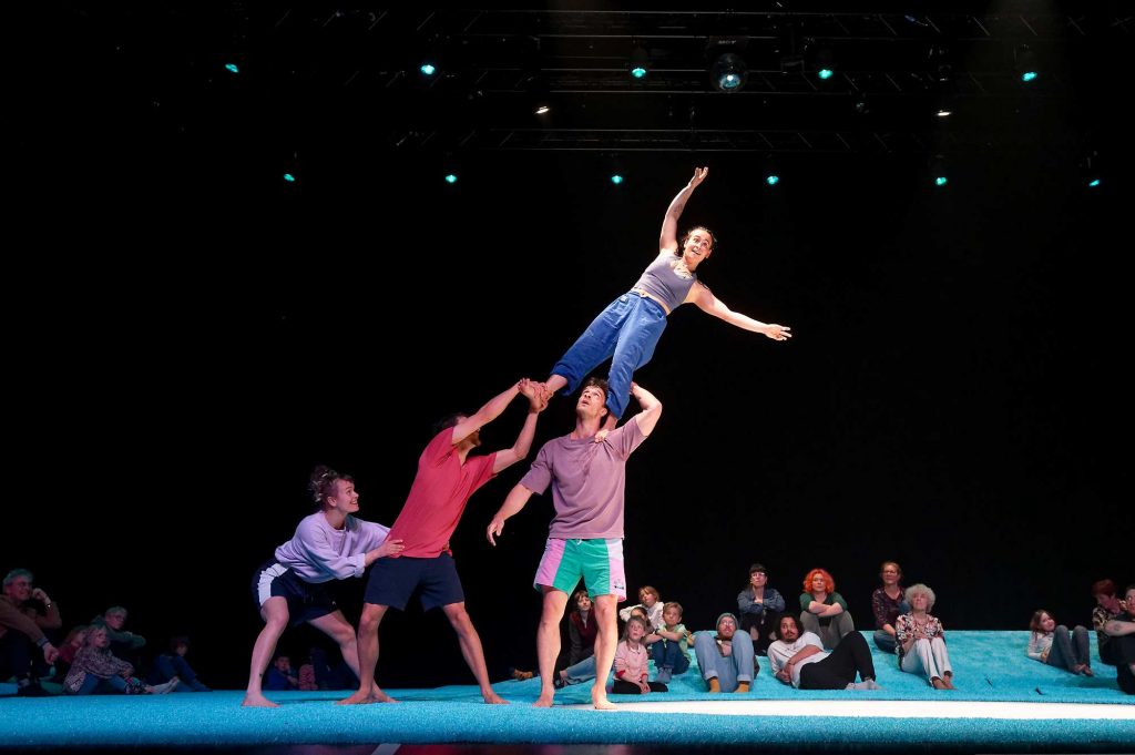 Corps tendres est une exploration sensible et acrobatique autour du sens du toucher. Dans cette création immersive acrobates et un musicien nous invitent à plonger dans l’intimité de nos interdépendances heureuses ou contraintes