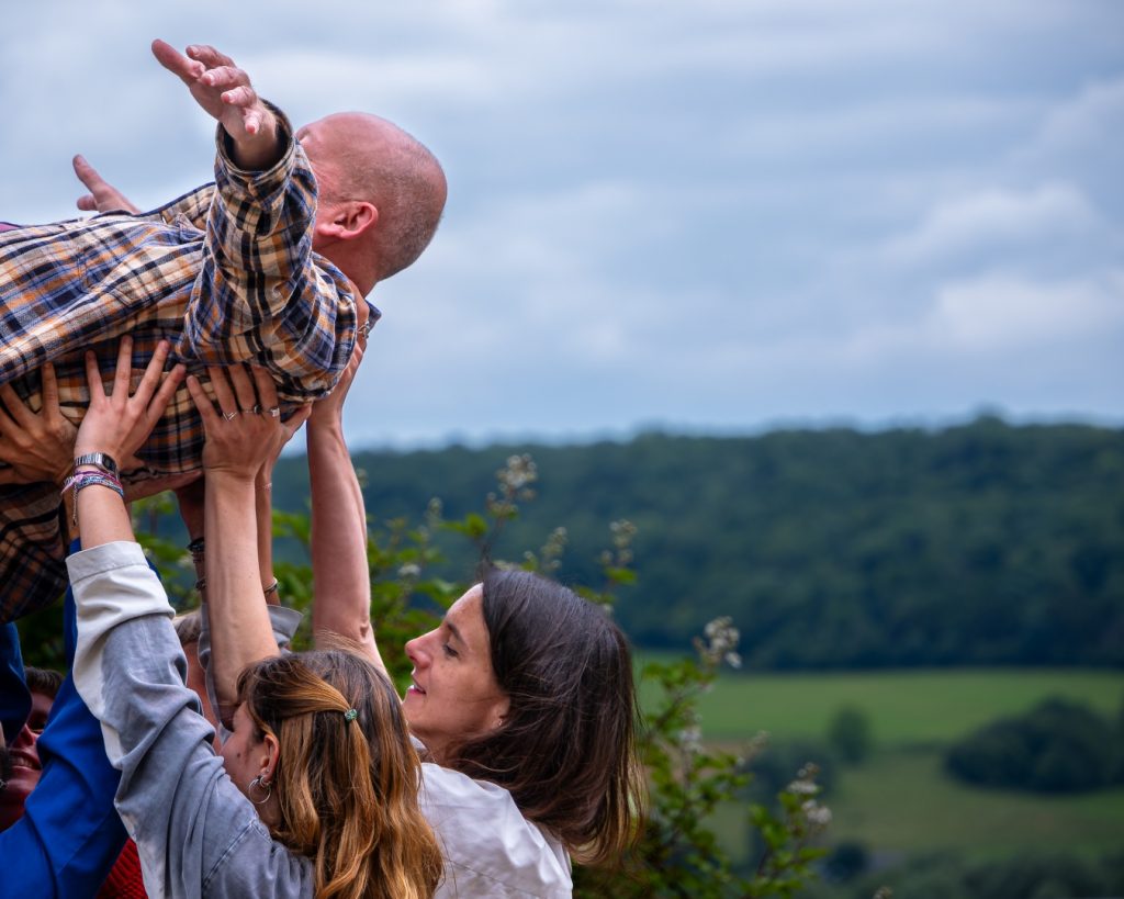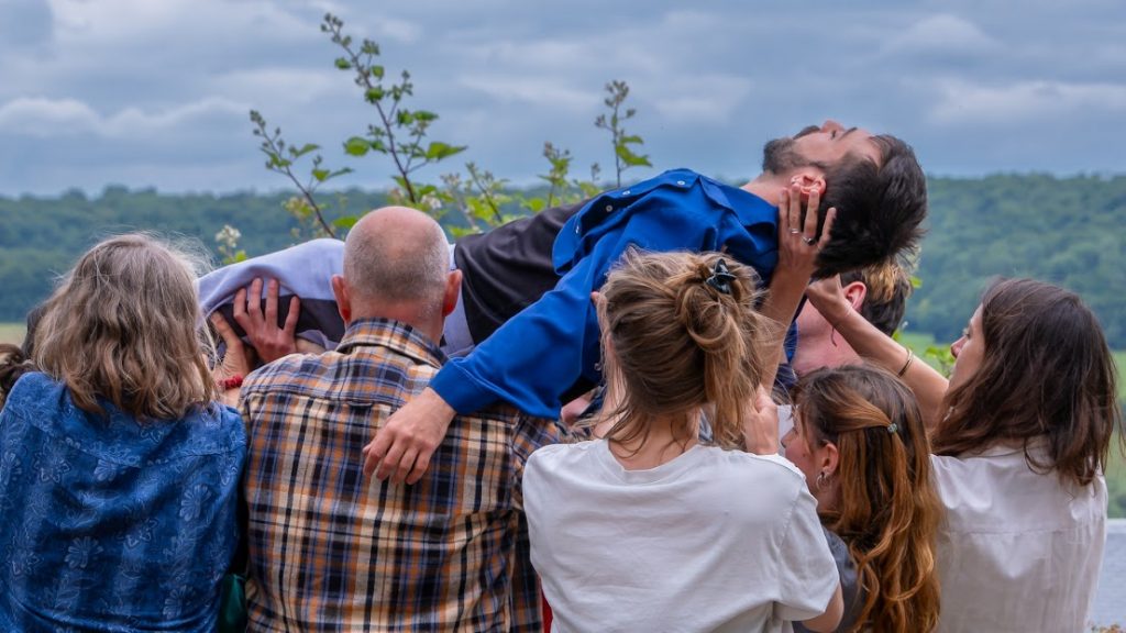 Dans des espaces naturels, et notamment les prairies, les acrobates amènent le public à explorer en corps et en mots leur rapport à la confiance, au consentement et aux limites et possibilités de leurs corps et de ceux des personnes qui les entourent. Un moment intime, acrobatique, doux et ludique dans lequel petits et grands se retrouveront embarqués d’un cocon de verdure joyeux et questionnant.